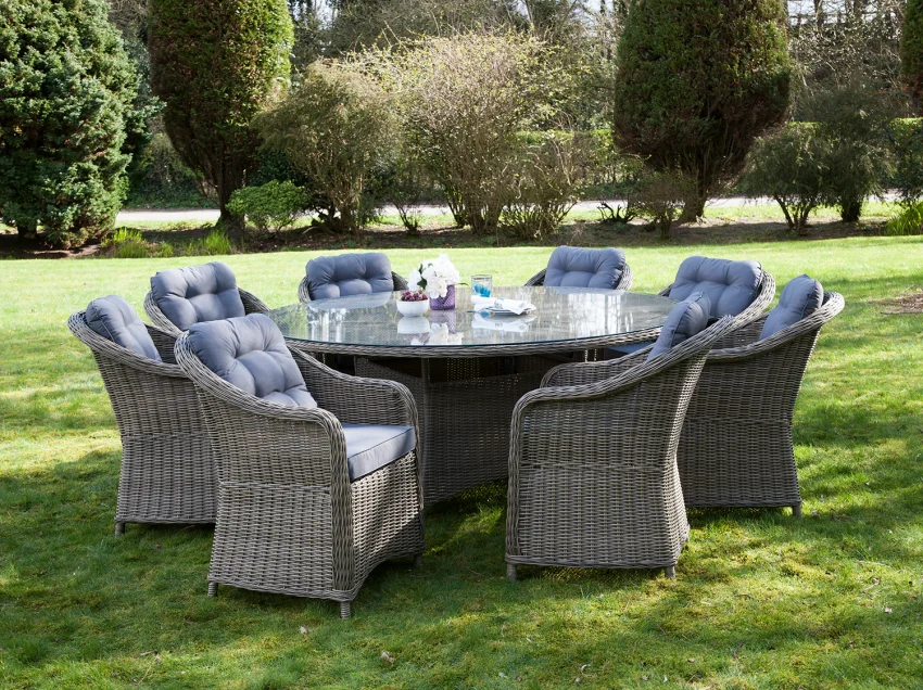 Einfach mit Wasser und milder Seife reinigen – keine aggressiven Mittel verwenden. Homary bietet Pflegehinweise für jedes Gartenmöbel Set.